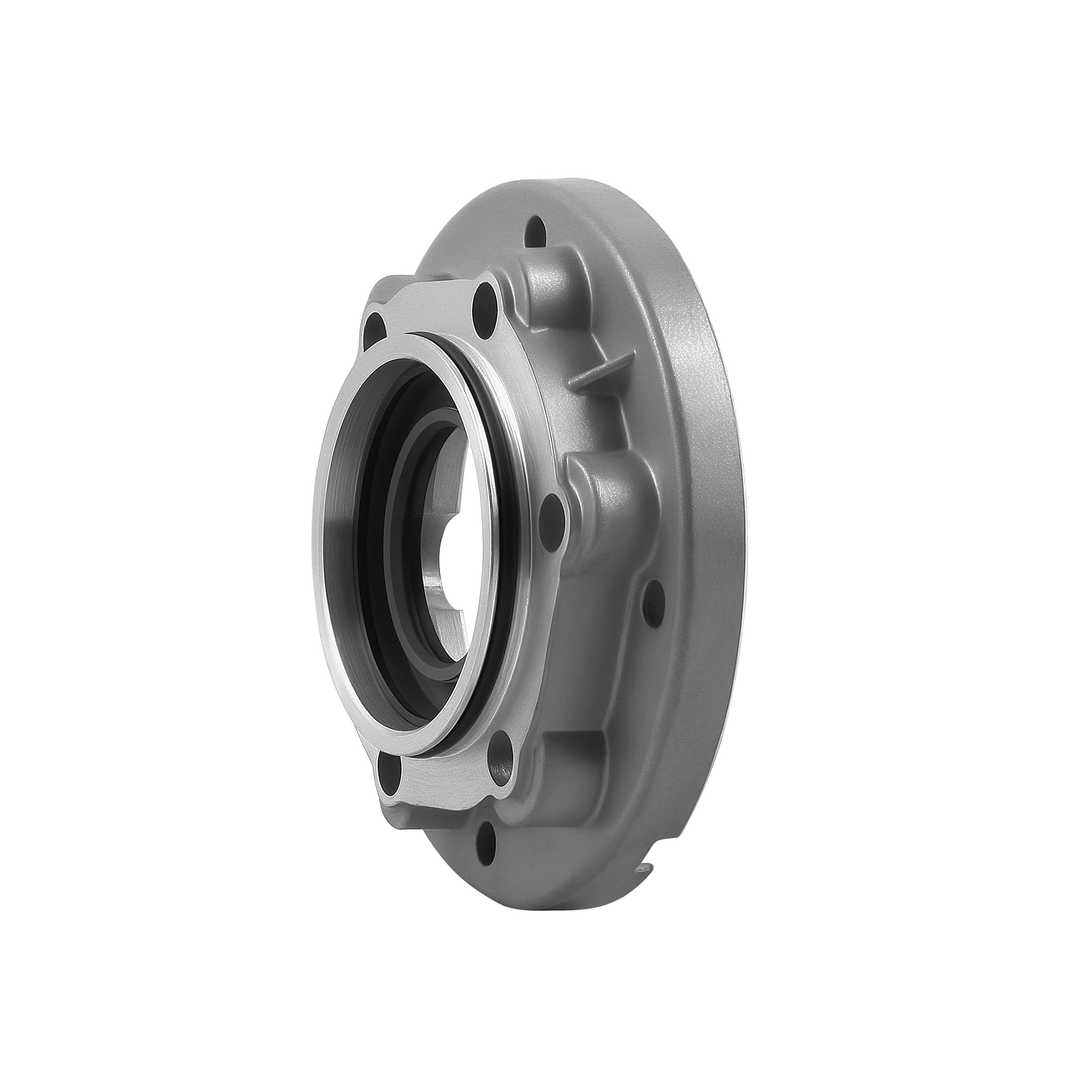 Входной фланец представляет собой важный соединительный элемент, который обеспечивает надежную стыковку редуктора с приводным двигателем или другим механизмом. Эта деталь выполняет функцию монтажного интерфейса, гарантируя правильное положение и жесткое соединение узлов.