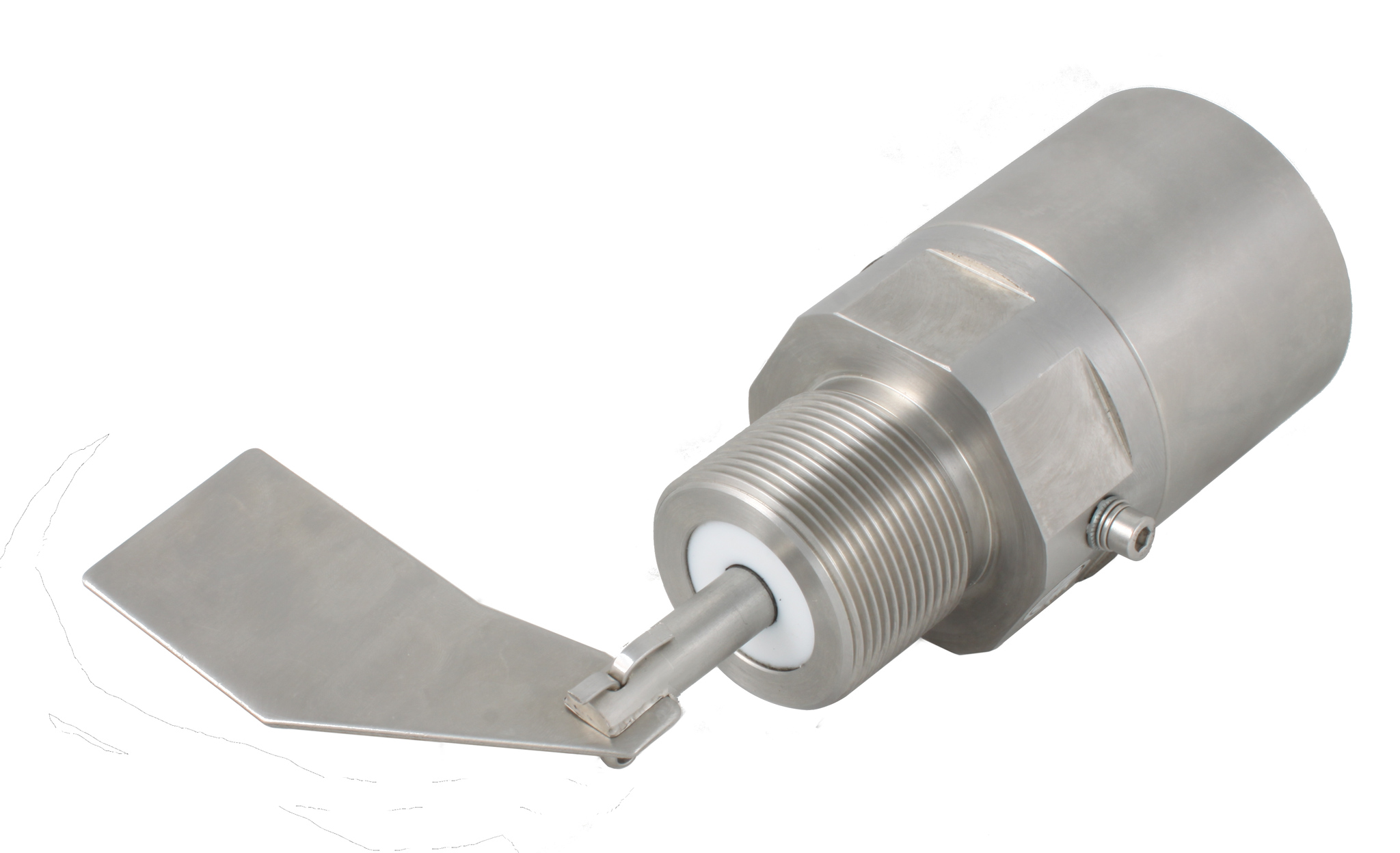 Измерительная лопасть приводится в действие шаговым двигателем. При контакте лопасти с материалом крутящий момент возрастает до полного останова двигателя, выходной сигнал переключается (регистрация уровня материала). При снижении уровня материала лопасть освобождается, двигатель возобновляет вращение, выходной сигнал возвращается в исходное состояние.