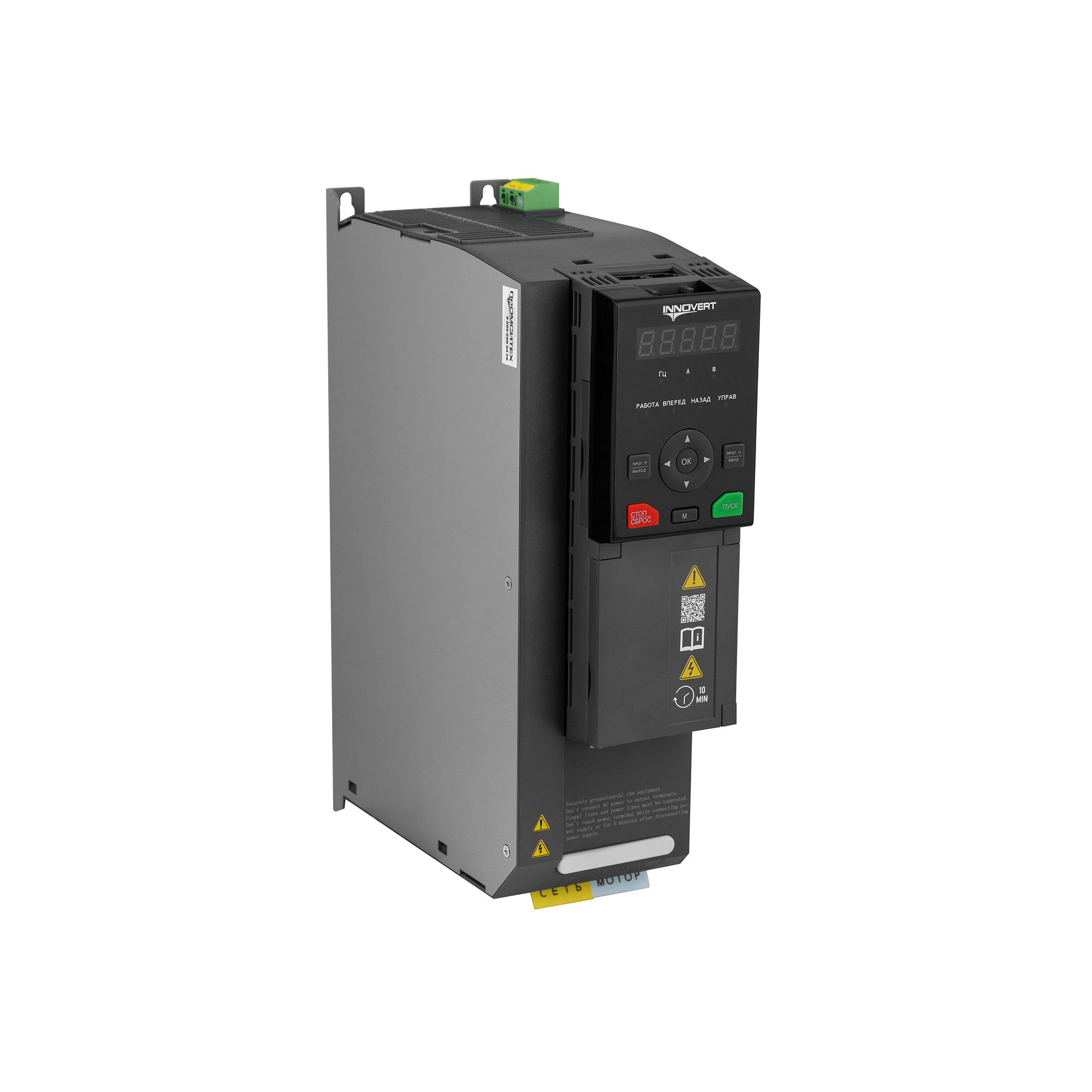 Надежный. Встроенные защиты от коротких замыканий, перегрузок (150% в течение 1 мин, 180% - 10 с, 200% - 0.5 с), перенапряжения, обрыва фаз, перегрева IGBT, несанкционированного изменения настроек.