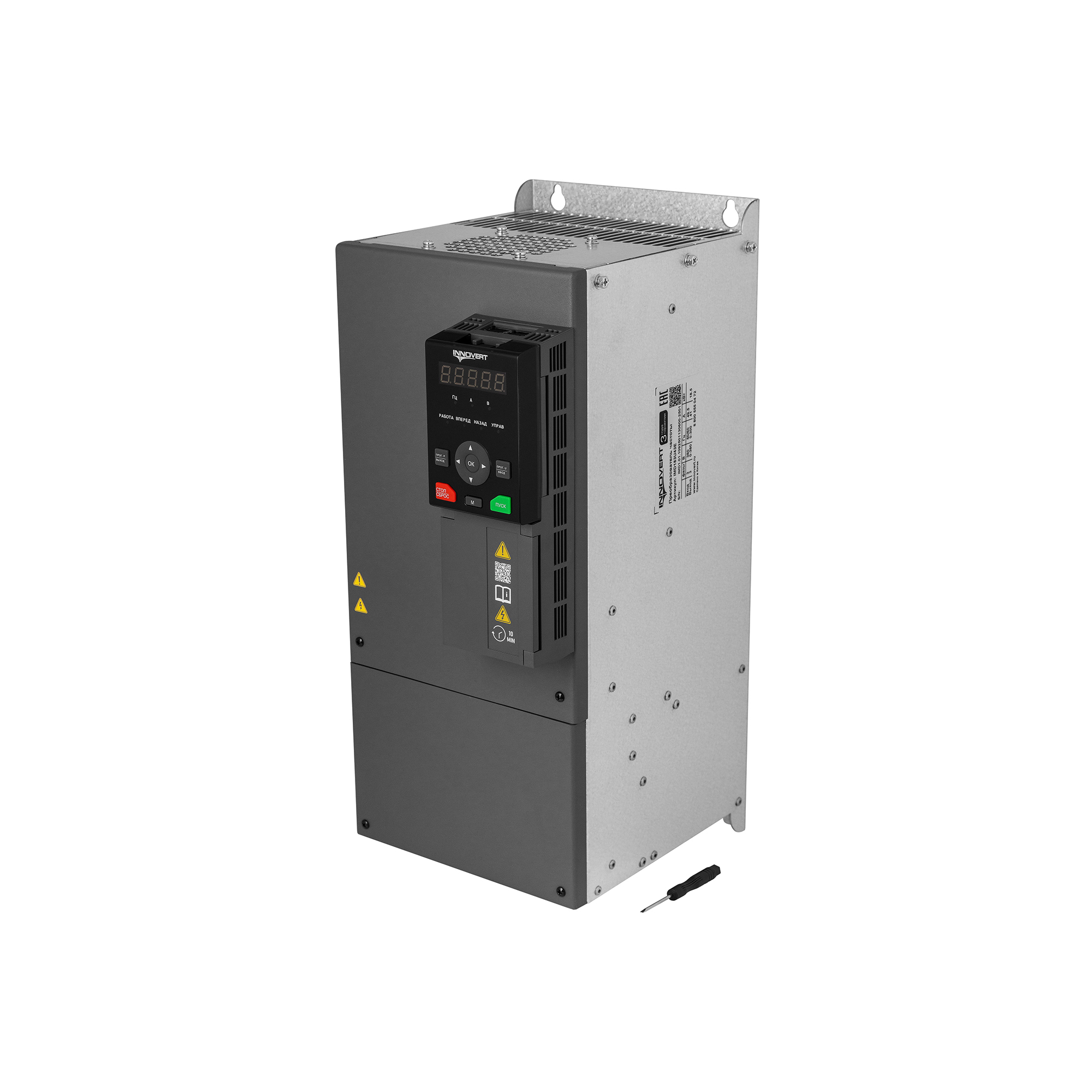 Надежный. Встроенные защиты от коротких замыканий, перегрузок (150% в течение 1 мин, 180% - 10 с, 200% - 0.5 с), перенапряжения, обрыва фаз, перегрева IGBT, несанкционированного изменения настроек.