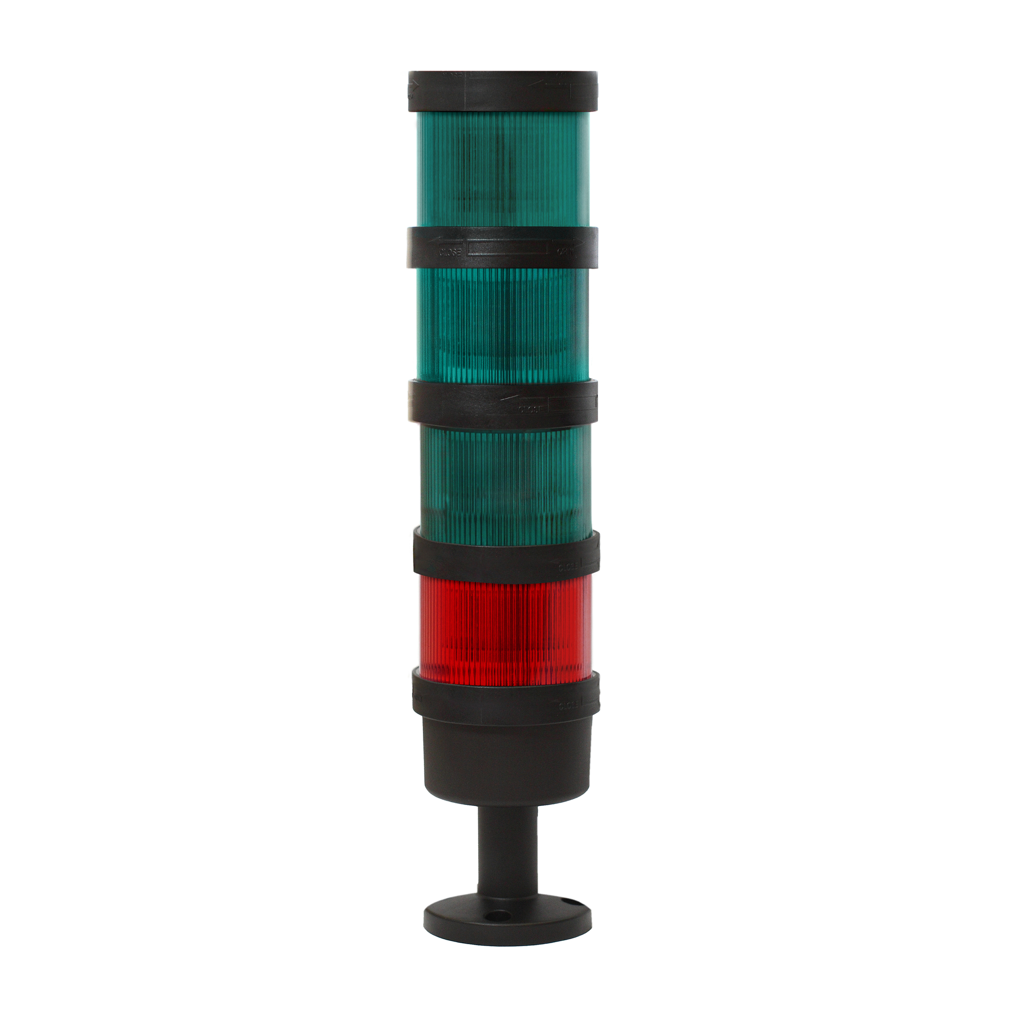 Светосигнальная колонна d=70мм, светодиод, стойка 55мм, основание d=70мм,постоянное свечение, без зуммера, цвет: зеленый, зеленый, зеленый, красный,24VDC, IP65, кабель 0,5м